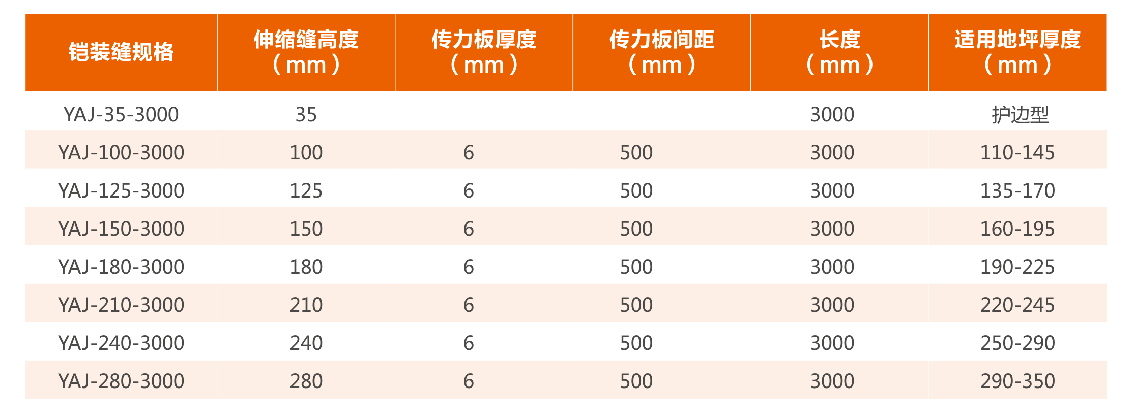 YAJ型地坪伸縮縫連接件的主要類型(材質(zhì)和標(biāo)準(zhǔn)):